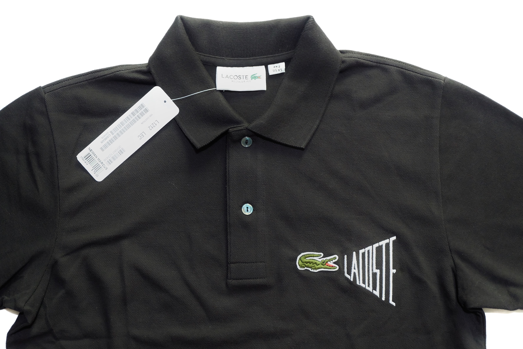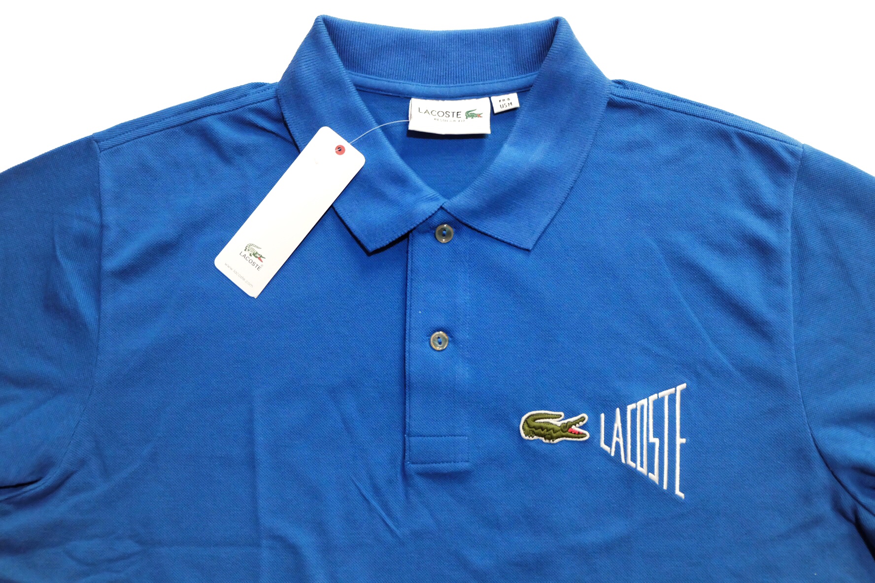 - Lettering and embroidered crocodile for this signature pique polo